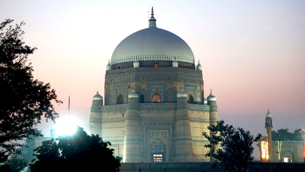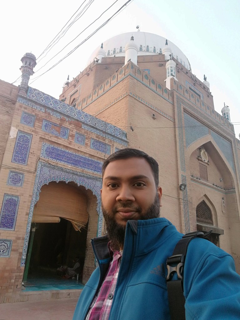 We arrived at Multan around 2pm. Shabbir did an excellent job taking us there timely. After having our lunch in one of the local restaurants we went to explore Multan, the ancient city. Multan is famously known for many shrines of saints. Though we have no specific intentions to visit these shrines, we wanted to enjoy the beautiful 13th century architects. One of the most famous shrines is of Bahauddin Zakariya. His shrine has the combination architecture influence of Iran and Afghanistan. The essential features of this shrine is its combination of three geometric forms—a square, an octagon, and a circle which, coupled with its corner minarets and battered walls, synthesized a style of Indo-Islamic architecture that remains influential to the present day.